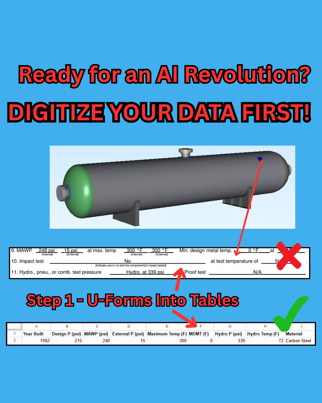 What about the interesting information found during external inspections? Repairs? Rerates? Derates? FFS assessments? Wouldn’t you want all of that data digitized in a way that makes it easy for AI to pull from?